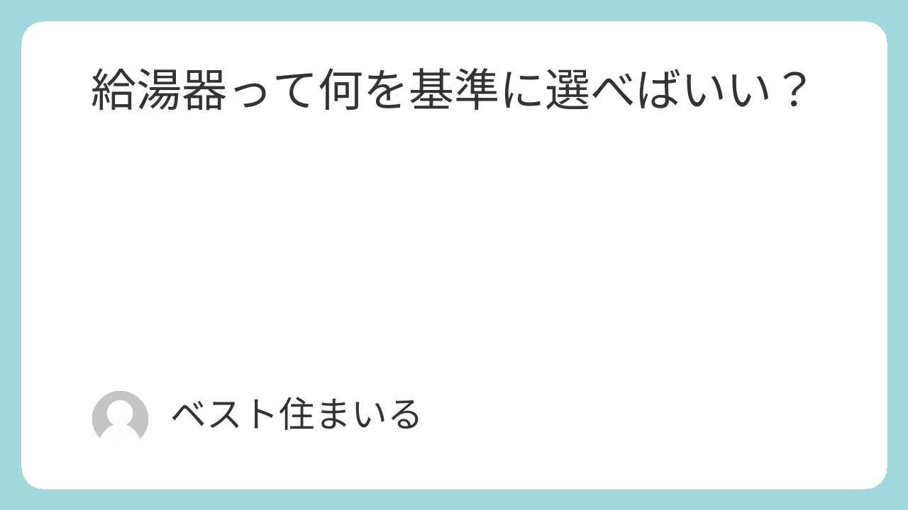 🎯 はじめに:給湯器って何を基準に選べばいい?